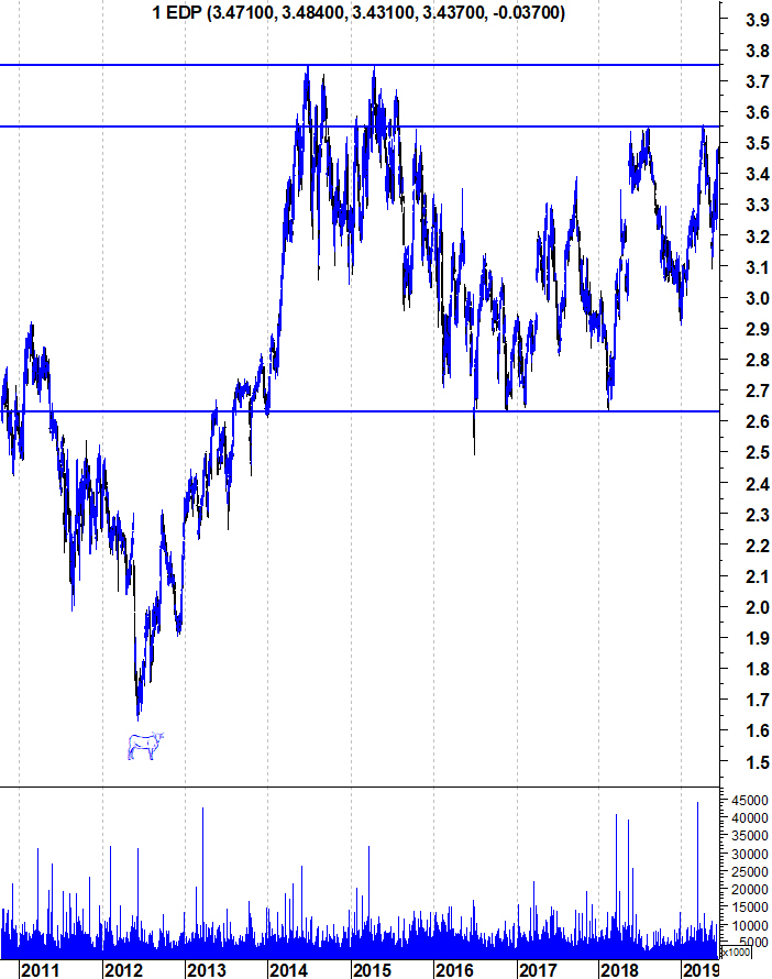 EDP vem descendo um bocado depois dos maximos dos ultimos anos..nao consegui romper os 3,55..o que acham que possa acontecer no decorrer do resto do ano??