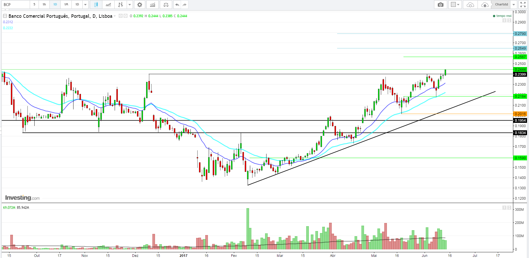 Realço os 0,2444€ como 1ºresistência a ser quebrada.