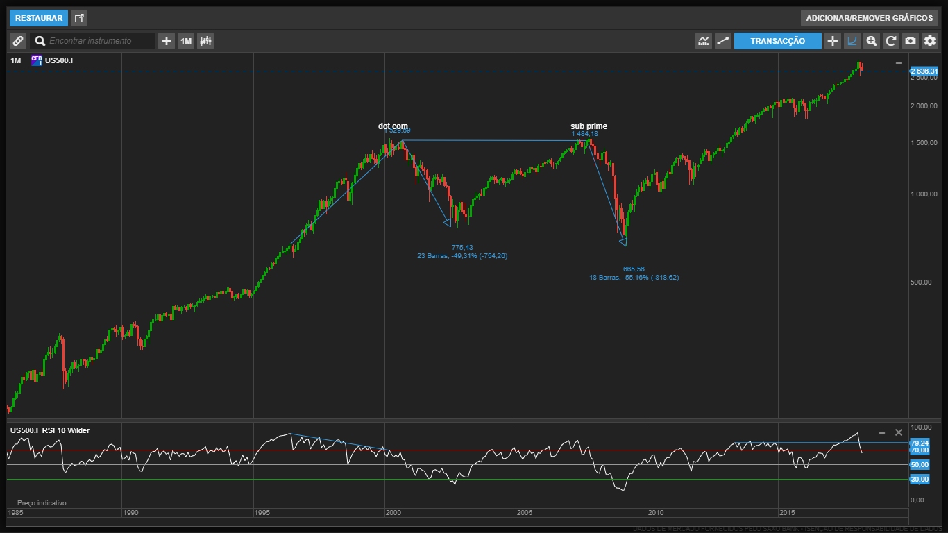 Cada um escolhe em que dados se quer basear, não vejo vantagem nenhuma para a negociação tentar adivinhar o futuro do índice. Eu guio-me exclusivamente por AT, e neste momento o SP500 está Bull até prova em contrario. Estou focado em longos, devemos negociar aquilo que está no gráfico e não tentar antecipar ou adivinhar. Até ver uma Death Cross estou otimista e a procurar oportunidades para longos, só depois da Death Cross viro para o lado curto