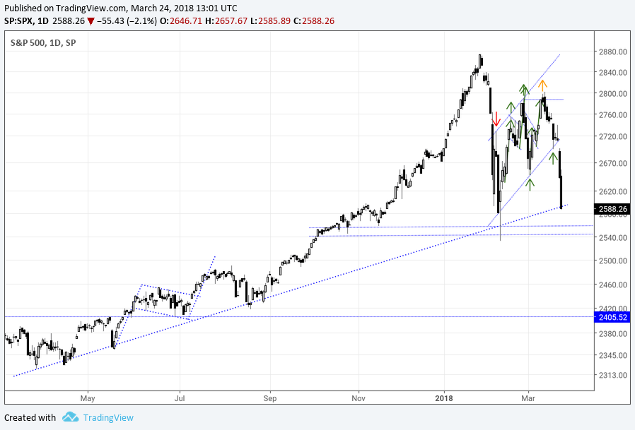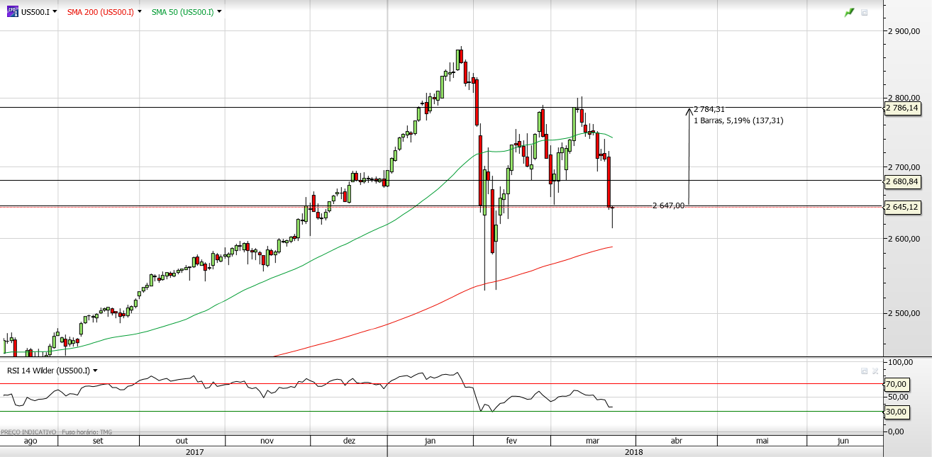 Esta guerra comercial à escala mundial nao beneficia em nada as bolsas e mais concretamente os indices americanos. O Trump aprovou este aumento nas taxas de importação com principal alvo a China. A China que ja tinha avisado que responderia na mesma moeda, o mais certo mesmo é aumentar também as taxas de importação de produtos dos USA.