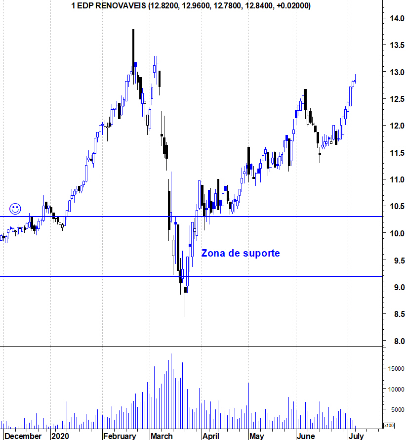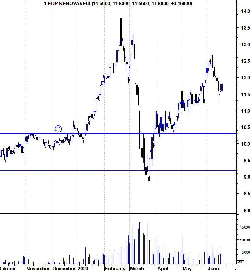 Em termos técnicos, há duas zonas que é importante a EDP Renováveis manter intactas. A primeira, em termos de curto prazo, é a zona dos 11 euros e depois, em termos de médio e longo prazo, é a importante zona de suporte nos 10,3 euros. Enquanto essas zonas não forem quebradas, os touros continuam a mandar na acção.