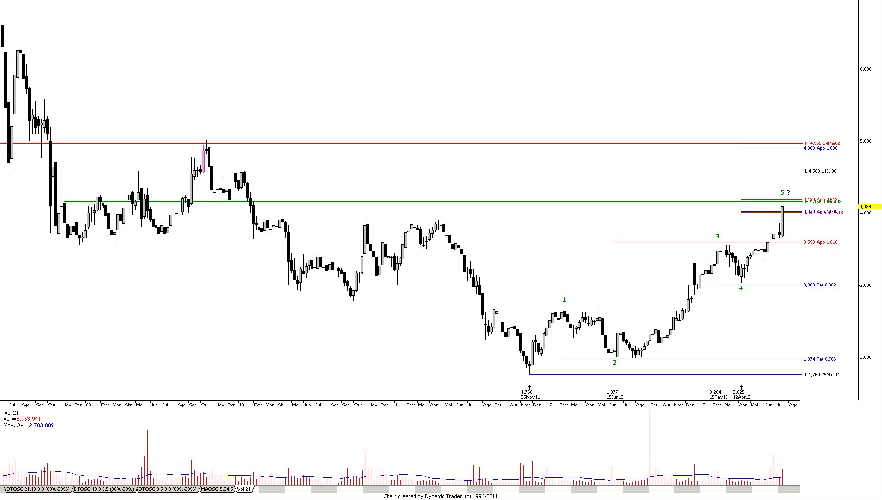Por lapso, esqueci de referir que existe divergência negativa no timeframe semanal, característica da formação de uma wave 5.