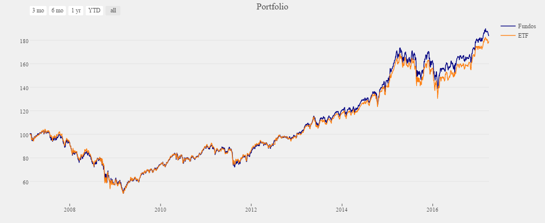 Se procurares no tópico sobre gestão activa vs gestão passiva, deixei lá alguns comentários sobre uma hipotética carteira dessas com ETFs iniciada a 2 de Julho de 2007 (vai fazer 10 anos daqui a uns tempos