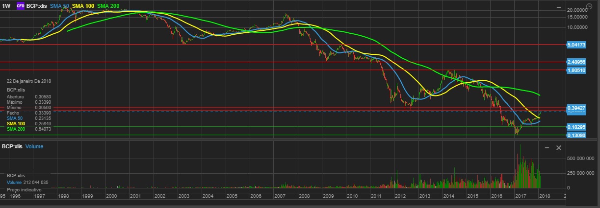 Se agora estão esticados há uns anos atrás estavam encolhidos quando a cotação caiu 800%, não comprei BCP o ano passado porque fiquei ai sim esticado no Banif aquando da resolução e ainda pago comissão de conta por ter acções, que neste momento não são acções mas sim lixo bem me arrependo mal por mal não ter investido no Grande BCP,