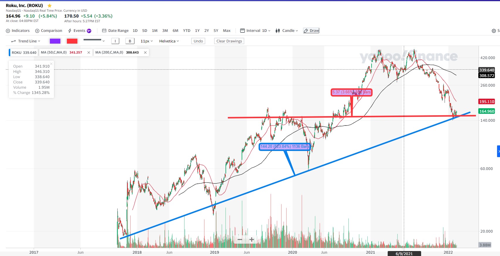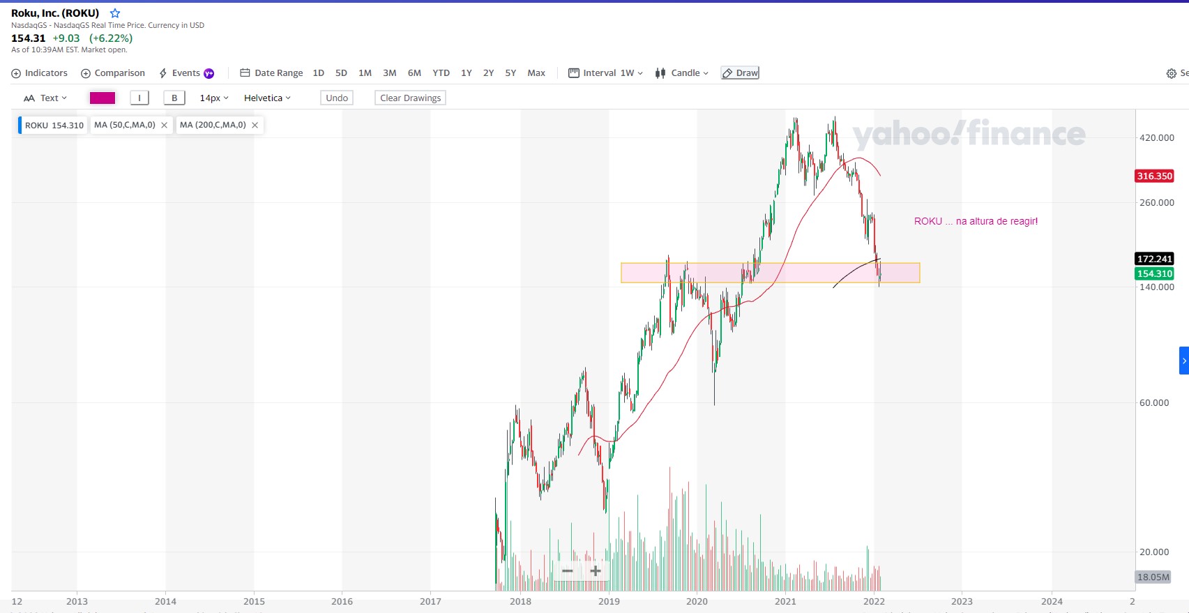 ROKU, gráfico semanal.