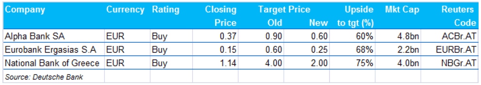 Mantendo-se a Grécia no € (o cenário ideal), o upside geral dos mercados do sul da Europa, Alemanha e Eurostoxx seria histórico! Nesse cenário que Price targets a 6 meses para 3 bancos gregos (que a par dos espanhois. Italianos e Portugueses (BPI e BCP), por esta ordem, estariam na mira):