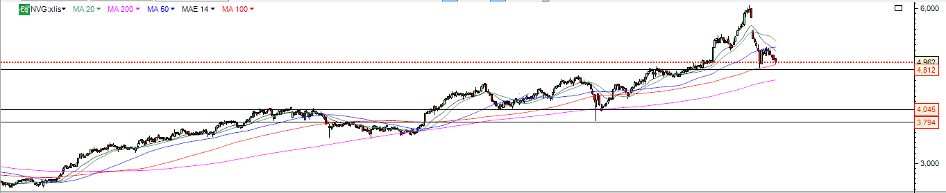 Após subida vertical no setor , setor efetuou uma primeira correcção , tentou a recuperação e está novamente a ceder encontrando-se agora novamente em suportes .