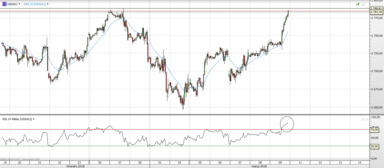 Extrema sobrecompra a 1h no RSI, entradas longas só após retração