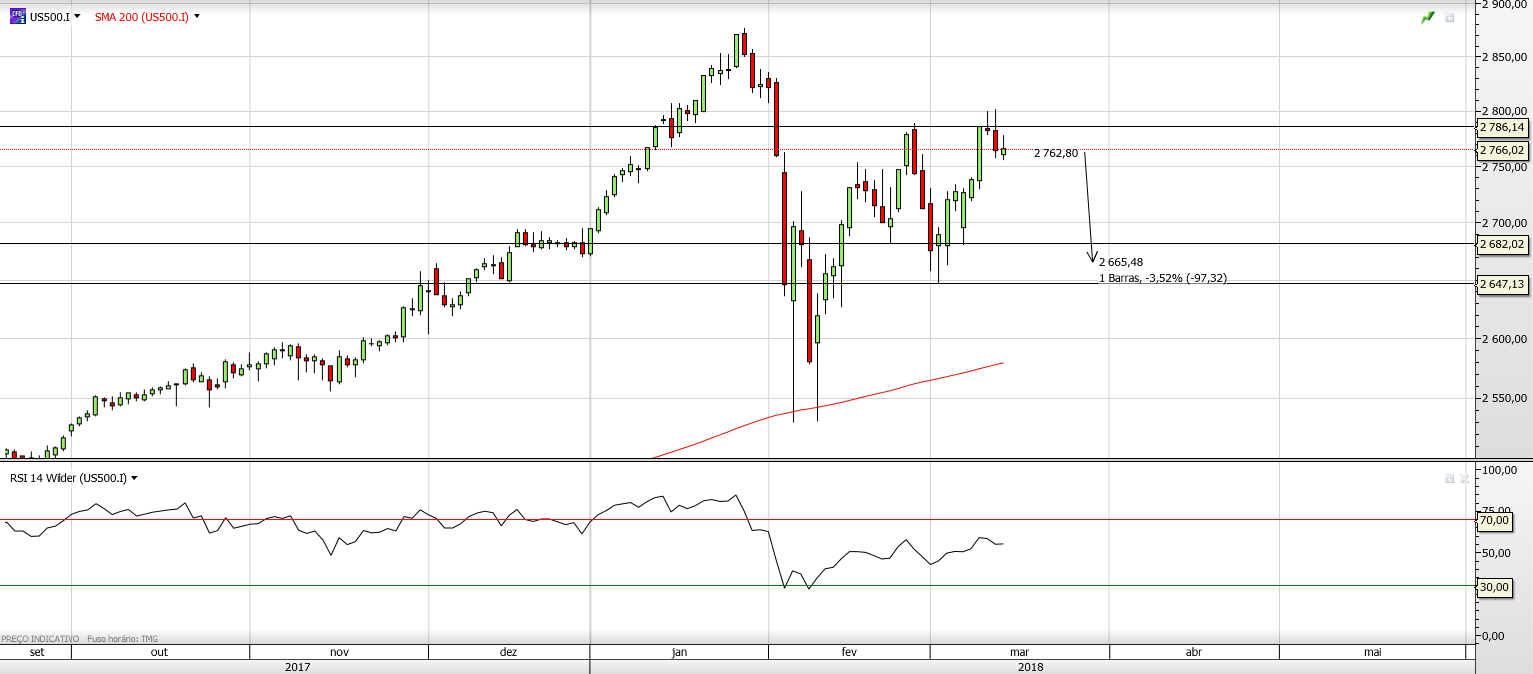 NO SPX agora tudo depende da quebra ou não da MM50 nos 2747.