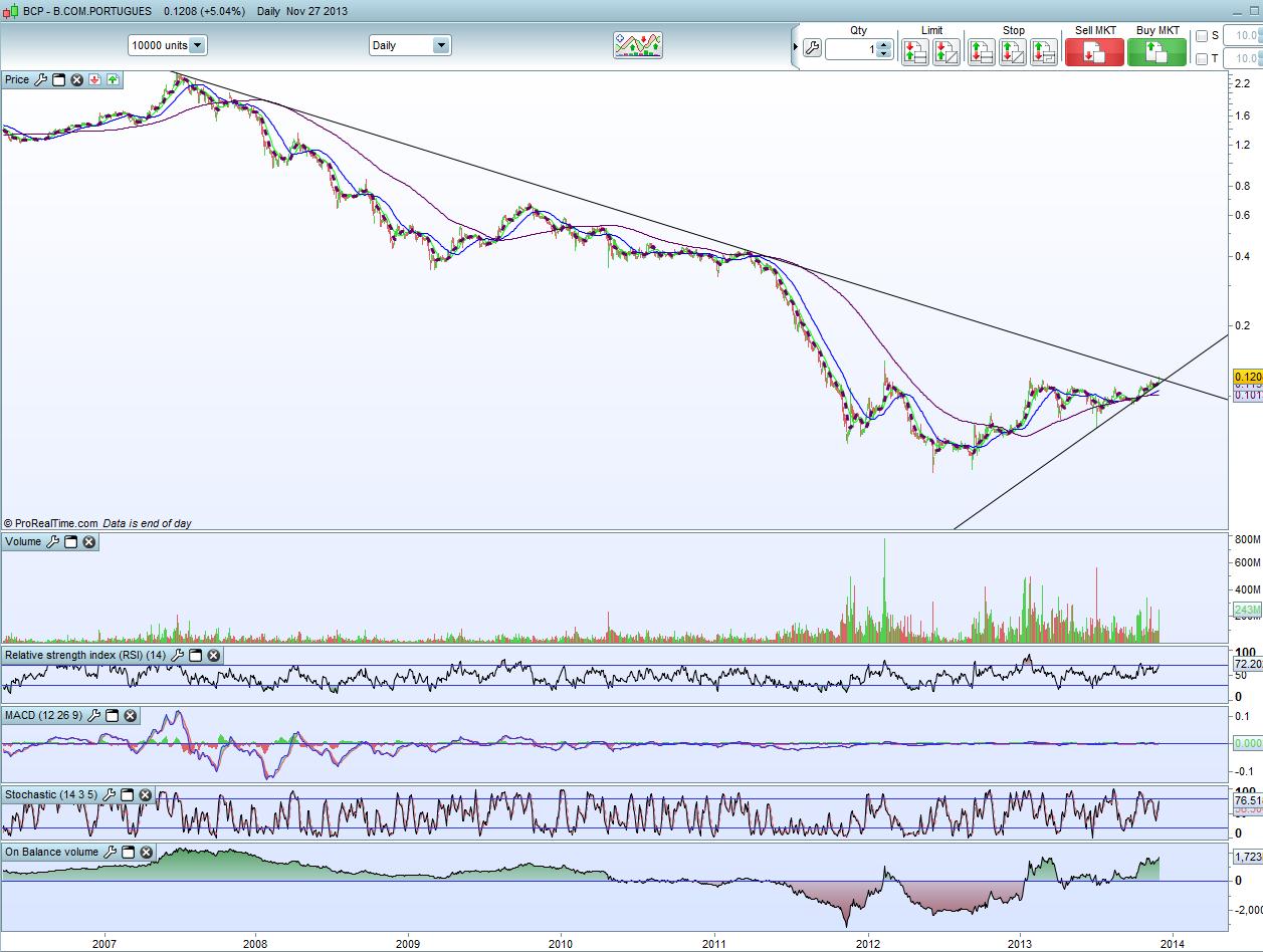 Os mercados nao estao a ayudar, contudo se o Bcp conseguir preencher a vela feita hoje de manaha será um factor impressionante de forçe.