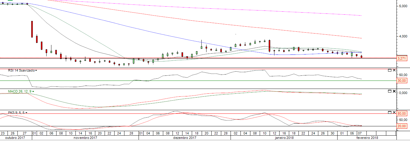 Titulo em sentido descendente e a entrar numa zona complicada em que indo um pouco abaixo disto , pode facilmente ir testar a zona dos 3 euros .