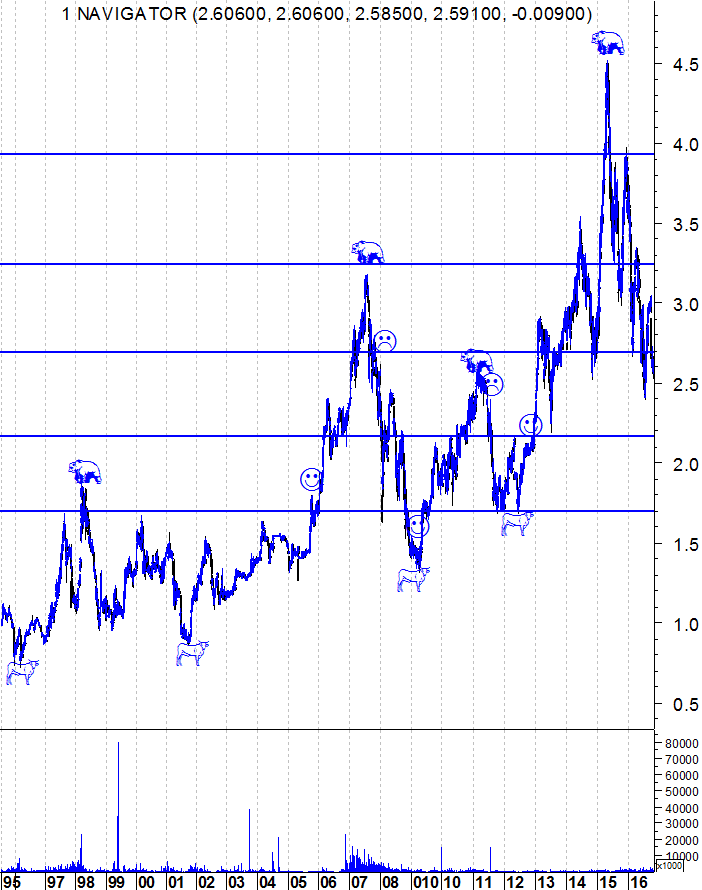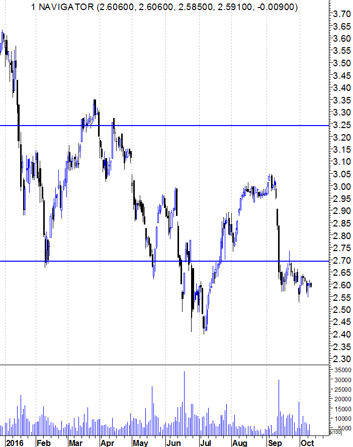 Navigator a tentar quebrar a linha de tendência descendente, ao mesmo tempo que supera a resistência dos 2,75€, anterior suporte. Se conseguir quebrar estas duas situações consistentemente pode ser um bom sinal. Inversão de tendência, para mim, só superando convincentemente os 3,0€.