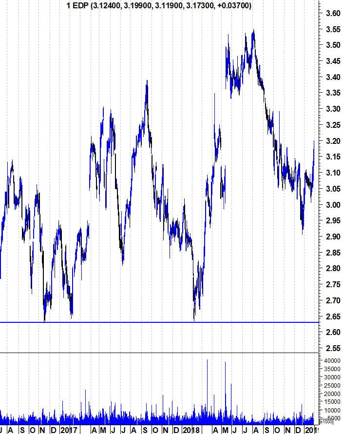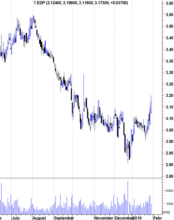 Porque é que há meses que nada escrevo sobre a EDP? Porque não consigo analisar o gráfico. Nem todos os gráficos me dão indicações claras e o gráfico da EDP, nos últimos meses, é para mim um total mistério sem qualquer referência interessante.