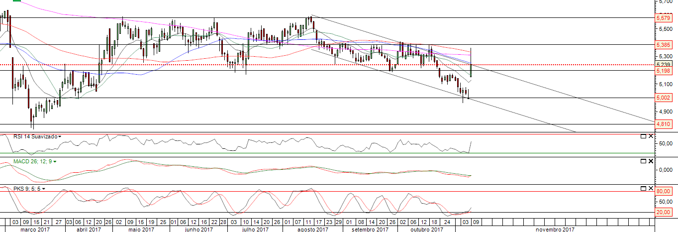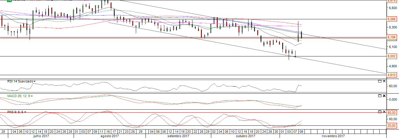 contudo vamos acompanhando se fecha em valores muito acima 5,26 que será o topo do canal descendente...
