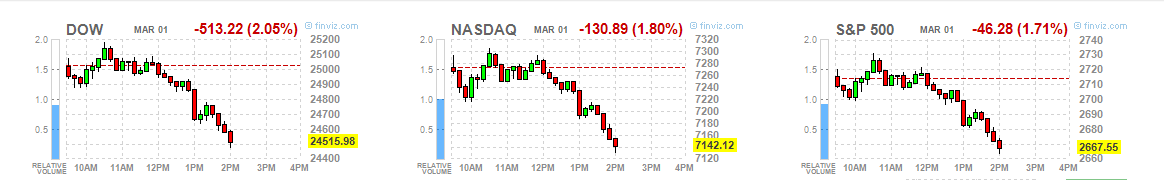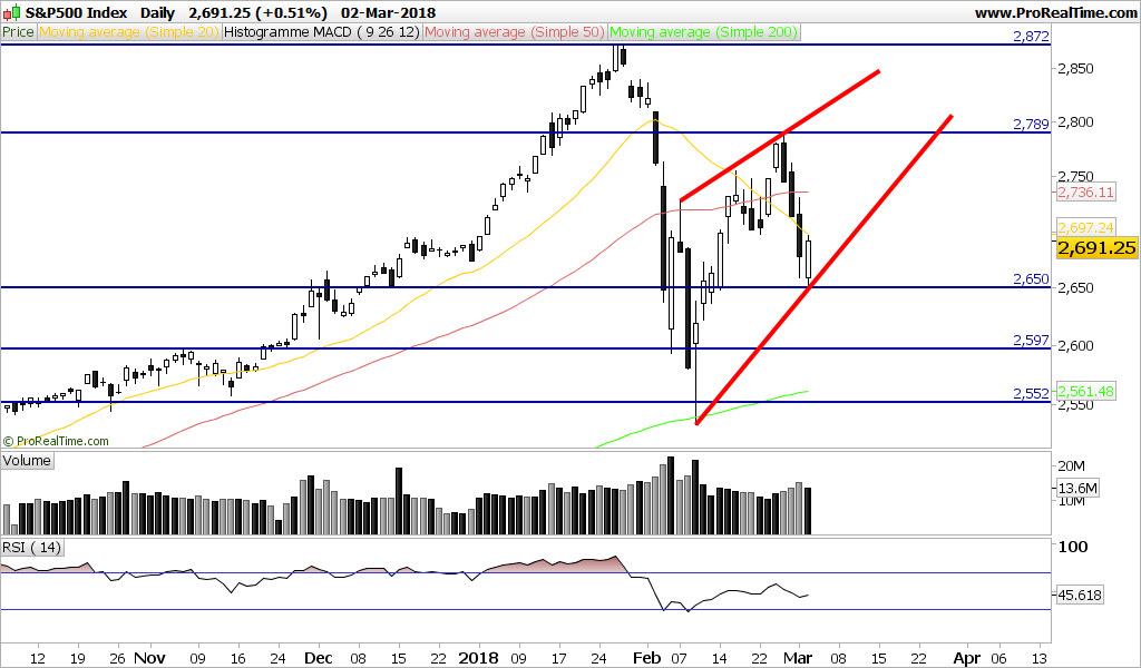 Dia 2 de Março de 2018, Dax nos 11870, SP nos 2650, Nasdaq 100 nos 6700