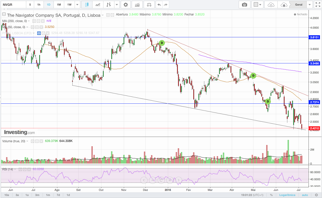 Aproveito para deixar o meu gráfico actualizado da Navigator, numa altura em que está no topo da 'falling wedge' depois de uma boa reacção à base e um belo rally.