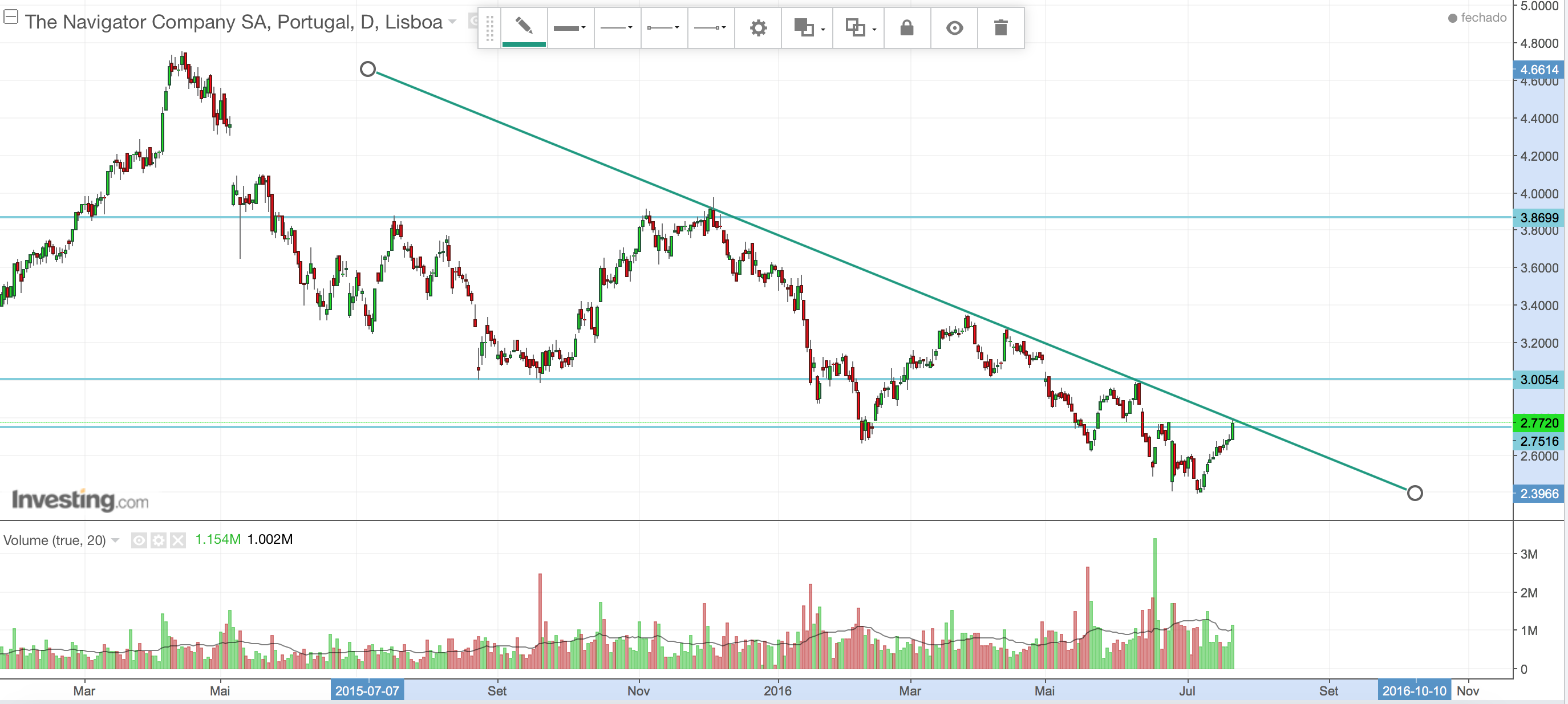 Para mim se tiver um fecho semanal convincente acima dos 2,77€, pode ter invertido o Bear Market (ver linha de resistência importantíssima no gráfico semanal).