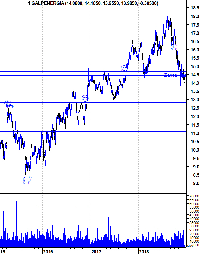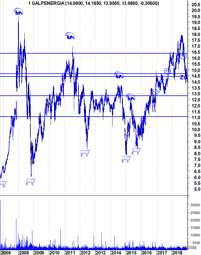 Está a perder importantes zonas de suporte. Primeiro os 16,4 e agora os 14,4.