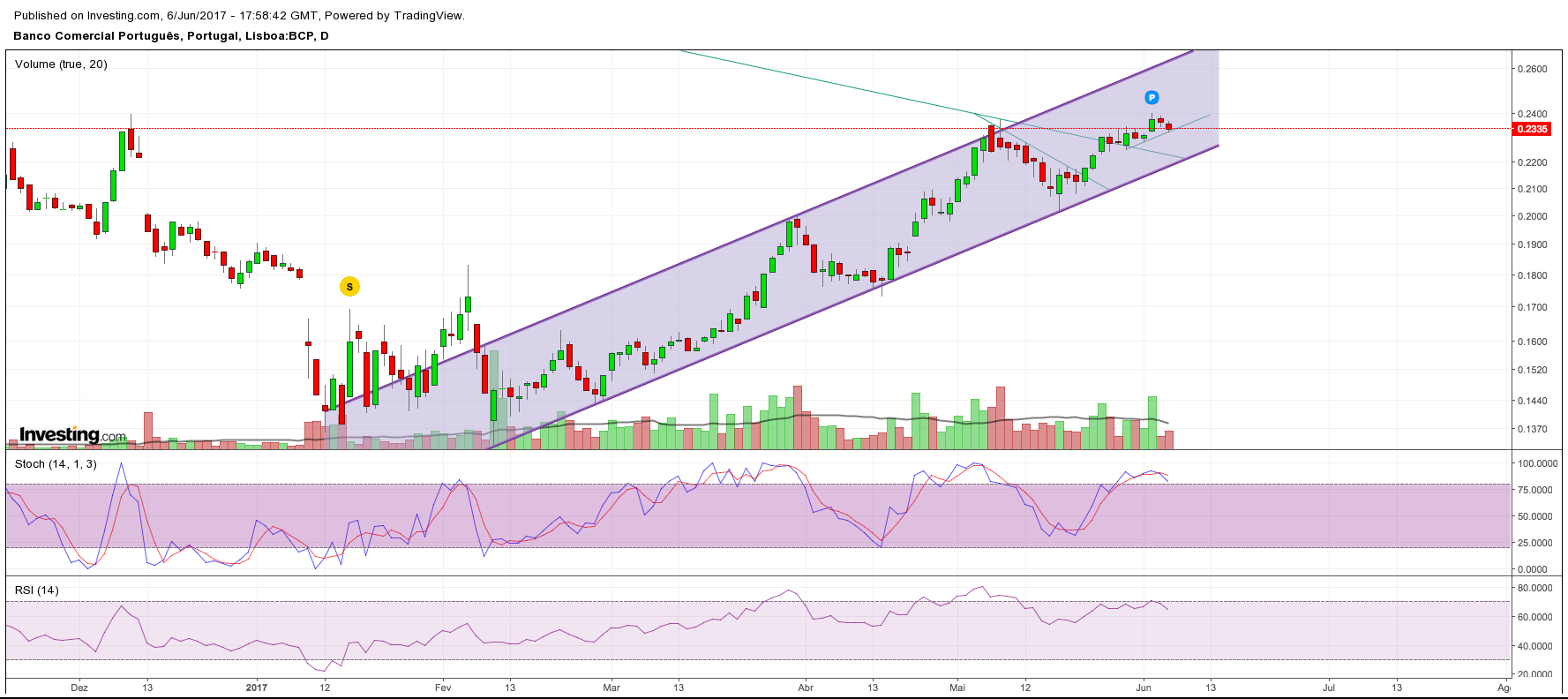 Inteiramente de acordo com o Johny. É óbvio que nenhuma acção sobe sempre e a tendencia é de subida. Está a aliviar os indicadores e acompanha o que se passa nas praças. Vamos ver como reagem as bolsas ás eleições britanicas e ao FED. mas mesmo assim, a tendencia d BCP neste momento é de subida.