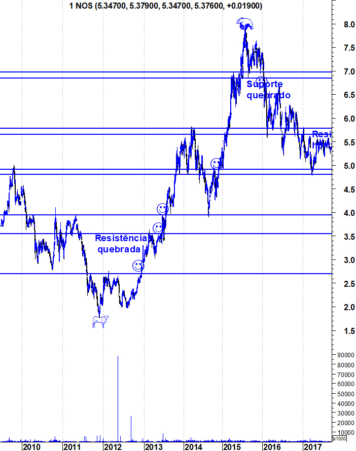 A acção vinha num canal descendente quase perfeito desde o final de 2015 até abril de 2017, e quanto a mim isso deve-se ao facto de a acção em termos fundamentais estar num valor elevado e investidores irem vendendo aos poucos e a cotação descendo calmamente .