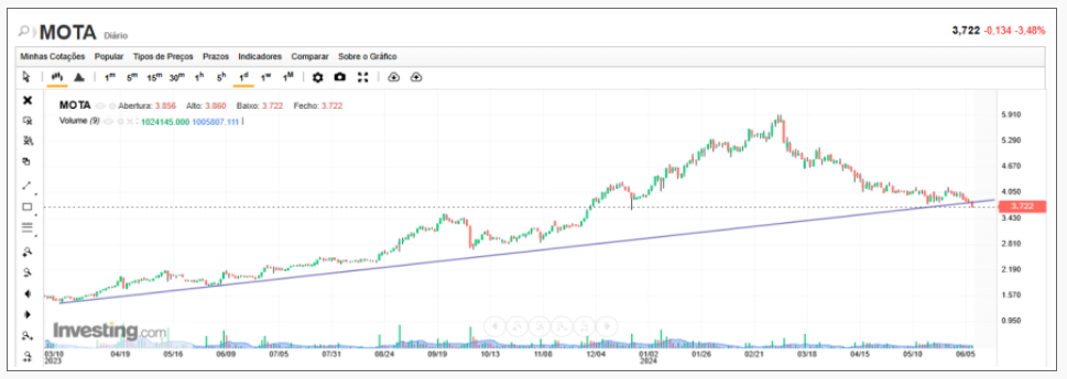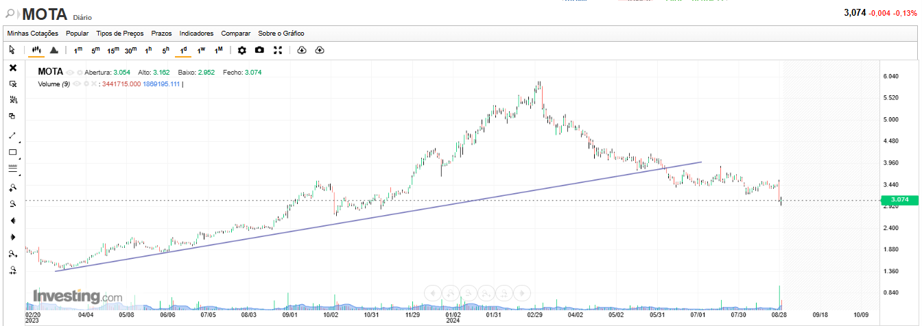 Qual é o sonho dos vendedores? Que os índices corrijam e quem tem Mota desate a vender. Pode dar errado, a Mota tem um suporte em 3 euros e aí os touros poderão entrar a comprar e as posições curtas ficam desconfortáveis e terão de emendar a mão.