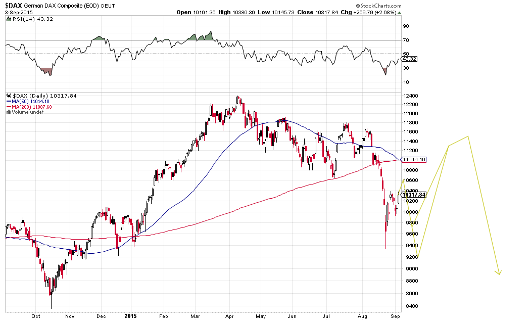 4) estes cenários apontam como mais provavel um ressalto em breve (2 ou 3 semanas) seguido de uma fase de lateralização onde poderá ser confirmado um lower high no semanal/mensal, o que implica um potencial elevado para o "desastre" nos anos imediatos (2/3 anos). é um "setup" que deverá durar eventualmente até meados de Novembro.