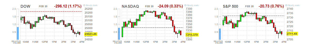 Uma queda de 1,% no Dow , 0,1% no Nasdaq e 0,6% no S&P são fortes quedas? Eagle, a sério...