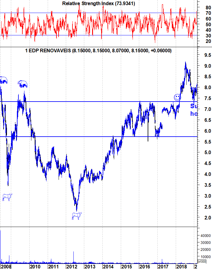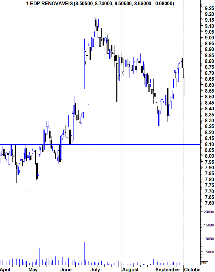Renováveis a querer testar resistençia 8 euros, os touros parecem dispostos a preparar o ataque.