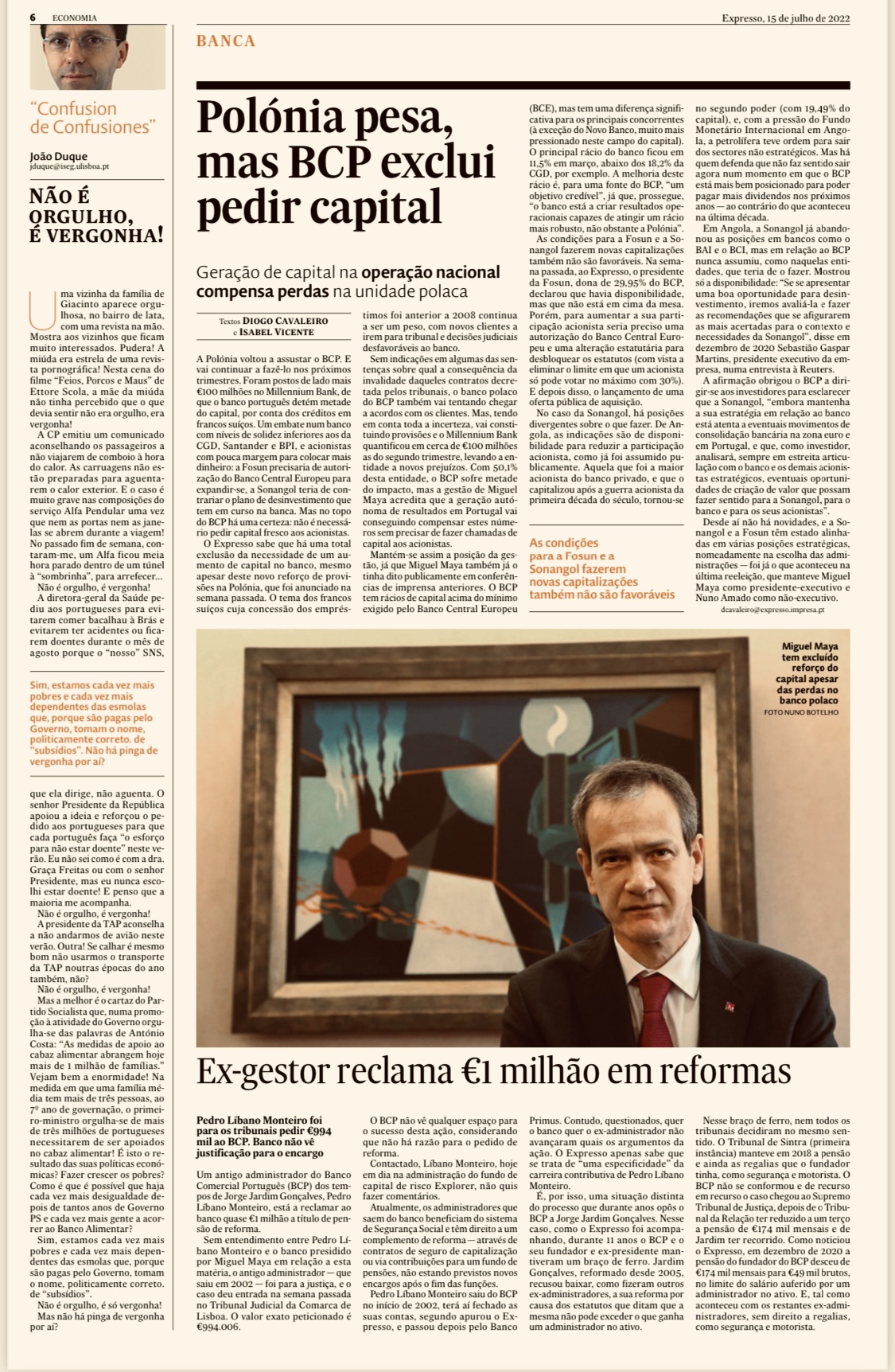 A história não está bem contada, Miguel Maya deve aos acionistas um esclarecimento,tudo. como fez em 2 de Dezembro 2020, quando a Sonangol disse que queria sair do capital do BCP.