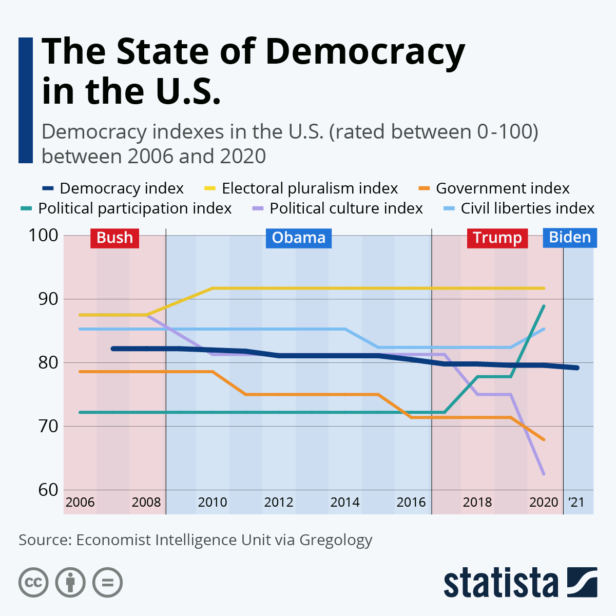 Já agora os índices de democracia têm descido com Obama e Biden não foi só com Trump.