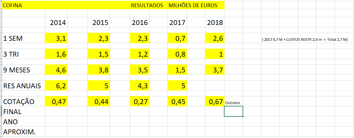 Comparativamente com período homologo , PESSIMOS , 3 TRI 2017 teve prejuízo de 250 Mil euros e 3 TRI de 2018 PREJUIZO de 1 MILHÃO