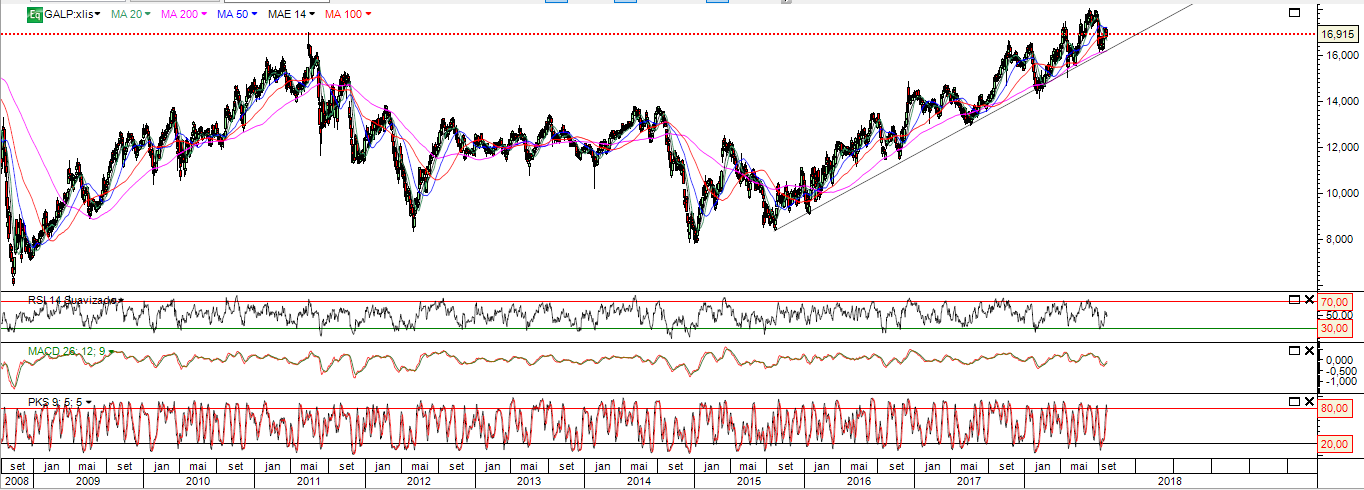 A galp para já mantem a tendencia de alta intacta mantendo-sse acima da linha,por enquanto.