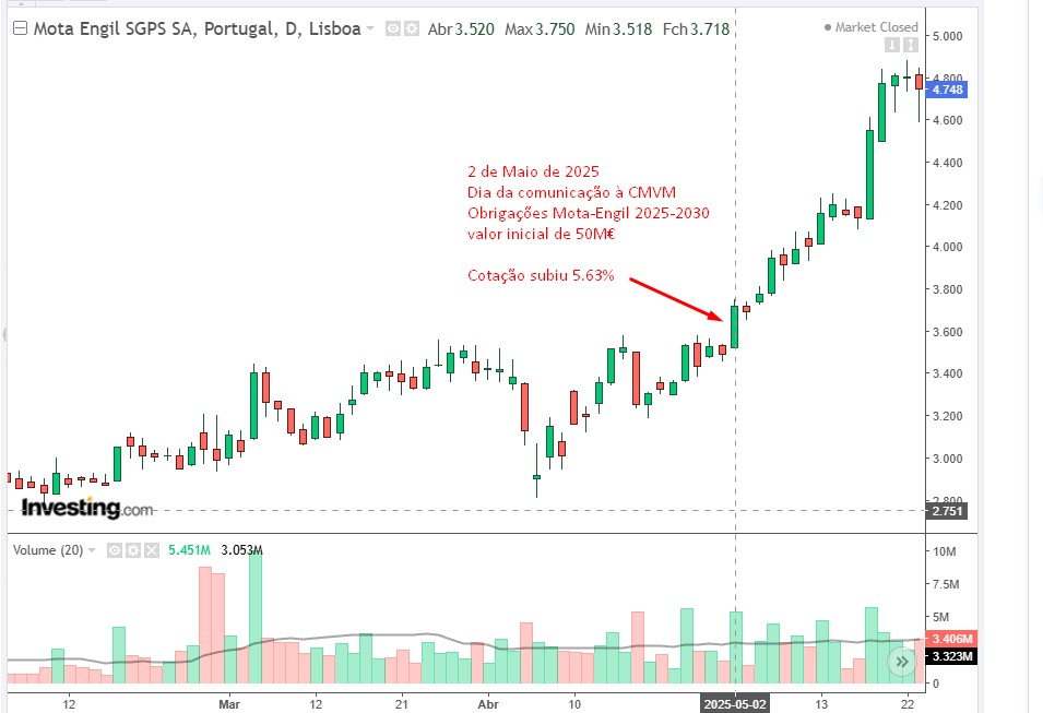 Na última emissão de obrigações, não só a Mota-Engil subiu quase 6% no próprio dia, como subiu 27% nas semanas seguintes