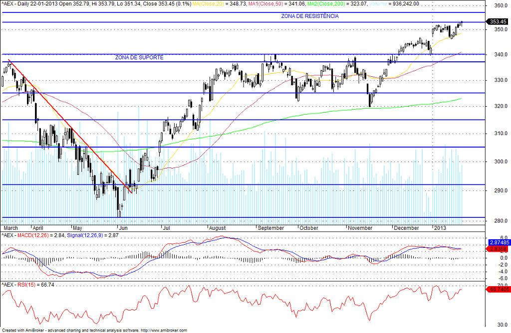 Para termos novos máximos anuais o índice terá de quebrar em alta a zona dos 2750/2785 pontos e aí terá caminho aberto até aos 2900 pontos. Uma quebra da zona dos 2700 pontos será o primeiro sinal que o cenário de quedas estará para breve. A activação da pá ventiladora ocorrerá com a quebra em baixa da zona dos 2600/2635 pontos o que implicará a quebra da 3.ª linha.