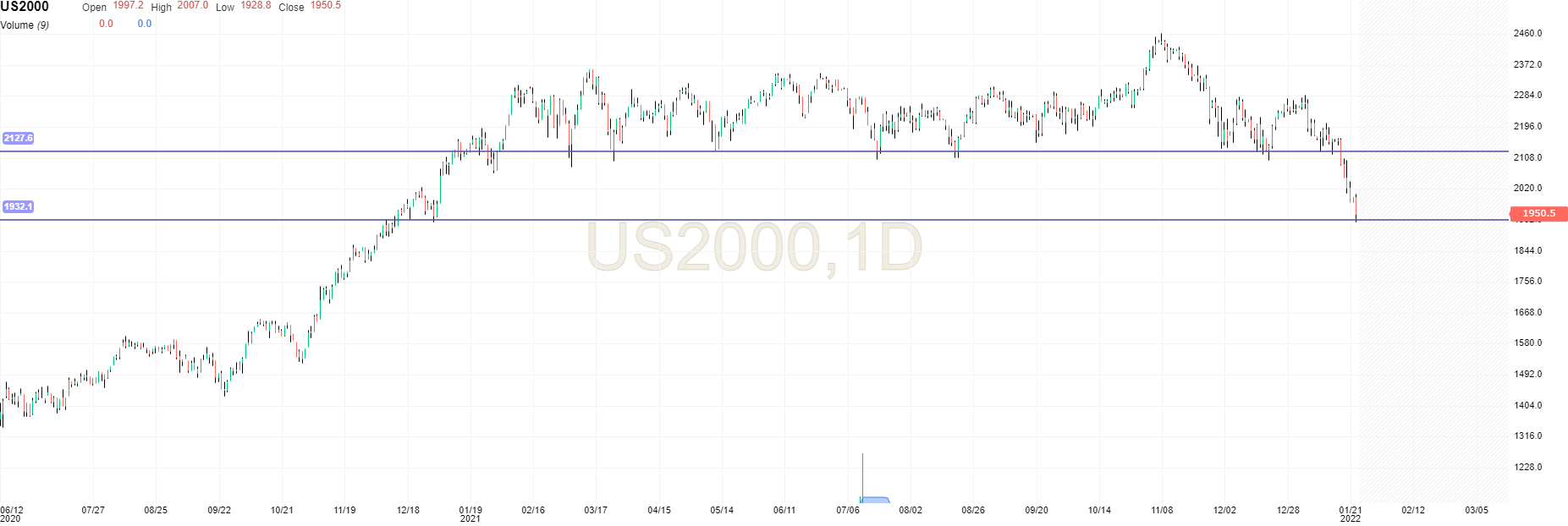 Hoje deverão ter-se atingido os mínimos no Russell. Indice completamente sobrevendido!!