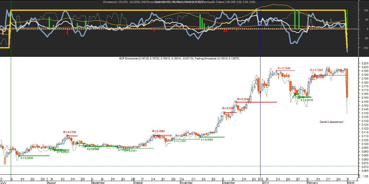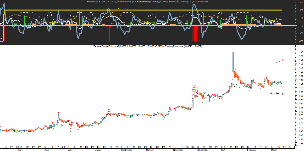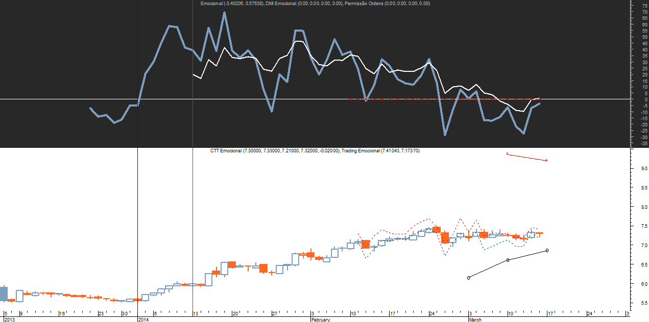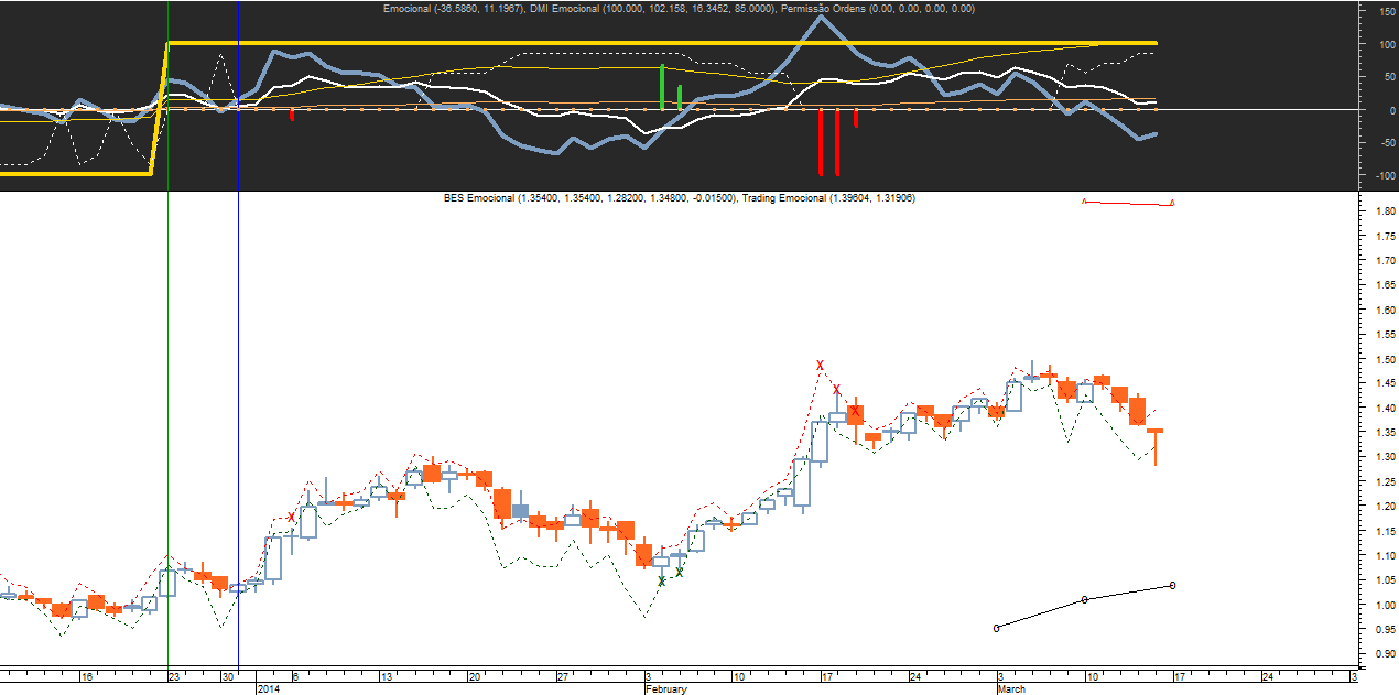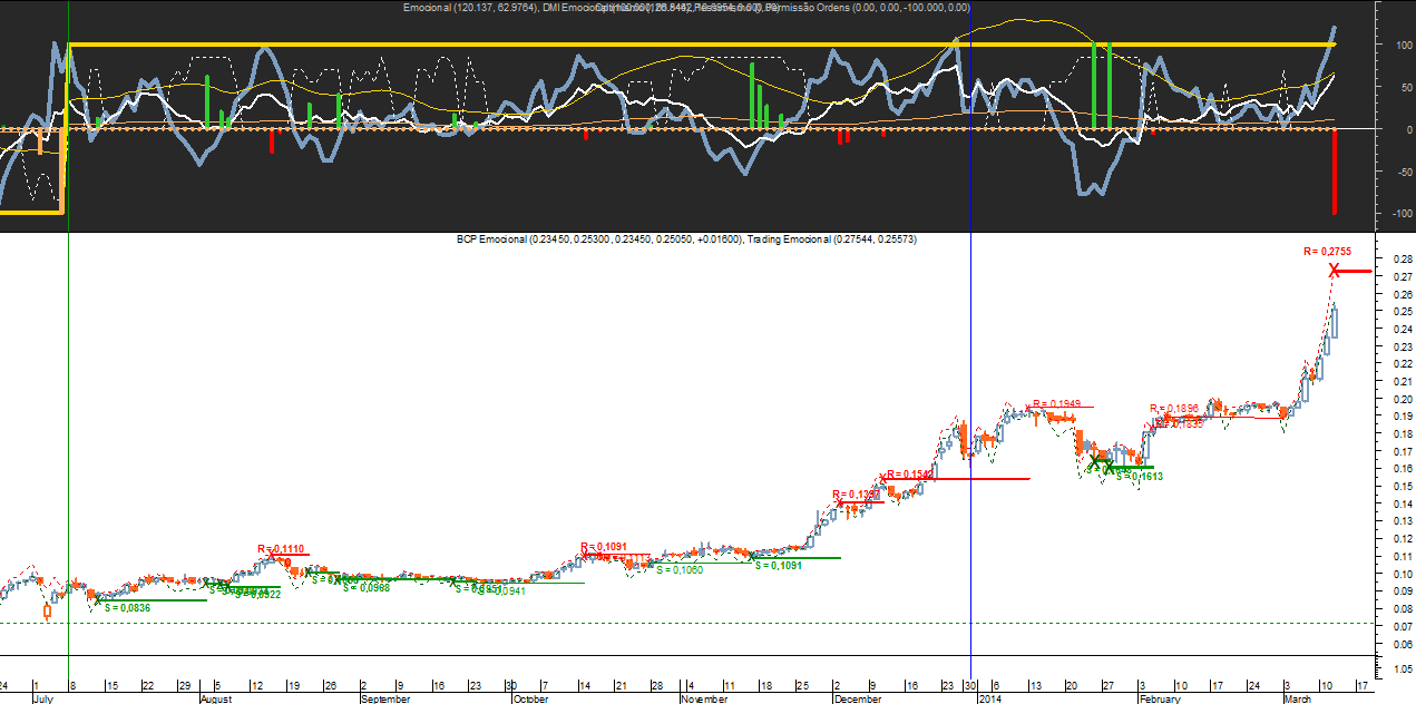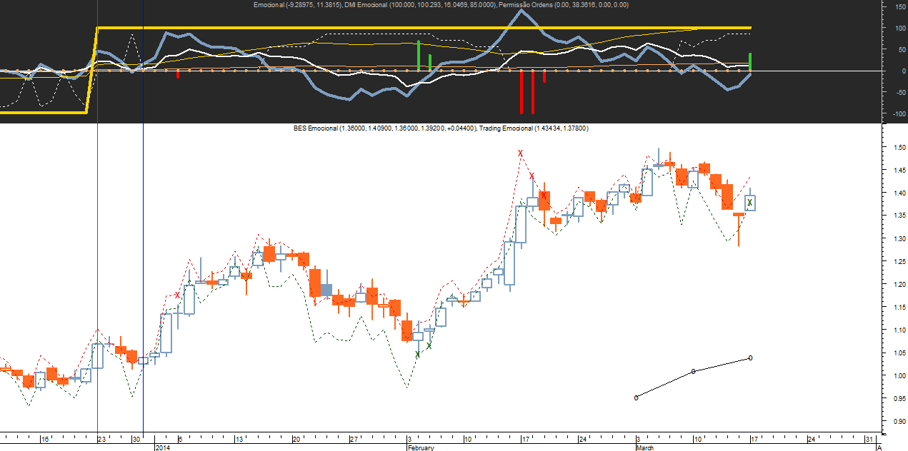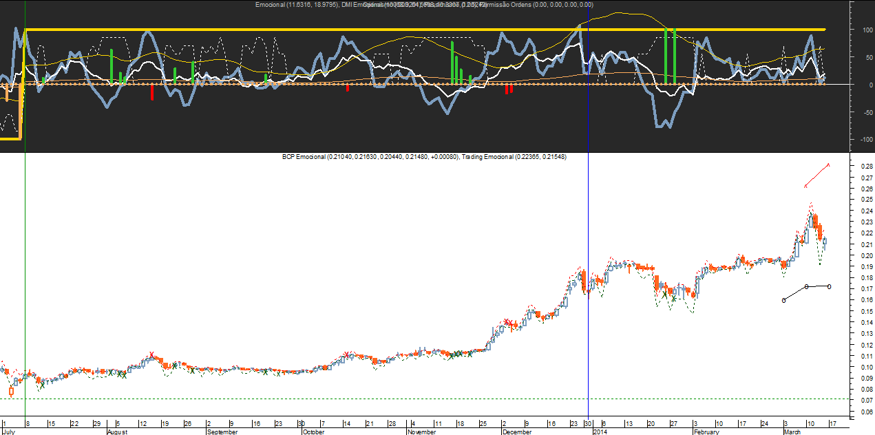 O facto dos seus ratings de curto e médio prazo se encontrarem otimistas geram alguma sensação de conforto no que respeita à manutenção das posições compradas, podendo-se visualizar através dos referidos indicadores com linha grossa em cor azul (curto prazo) e branca (médio prazo) os ratings emocionais atrás referidos.