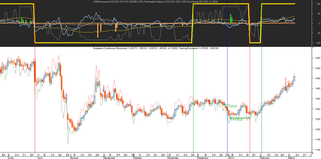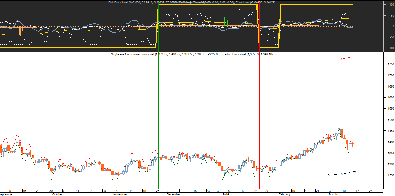 Abaixo deixo-vos ficar o gráfico da Soja com os indicadores do “Emocional”, uma vez que será a primeira vez que o publico, numa fase aliás particularmente “bullish”.