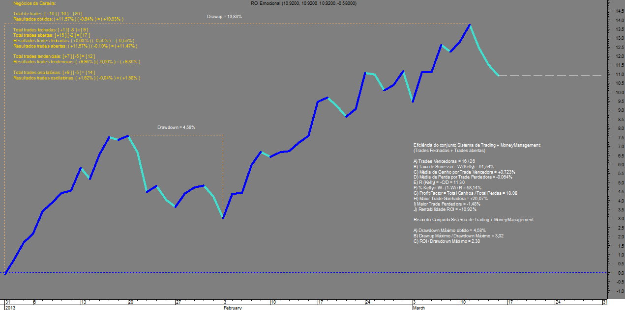 Considerando a totalidade dos negócios tendenciais abertos e fechados, pode-se acrescentar que a componente tendencial representa até agora 87,9% dos lucros totais da carteira e vai mantendo um rácio de eficiência de Lucros / Perdas = 10,33% / 0,51% = 20,3.