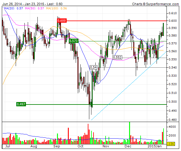 Canal ascendente (mais de 12 meses), testa 2 resistências móveis em simultâneo - MM50 e MM100 (clarificação no curto prazo). Overbought num crescendo de volume.