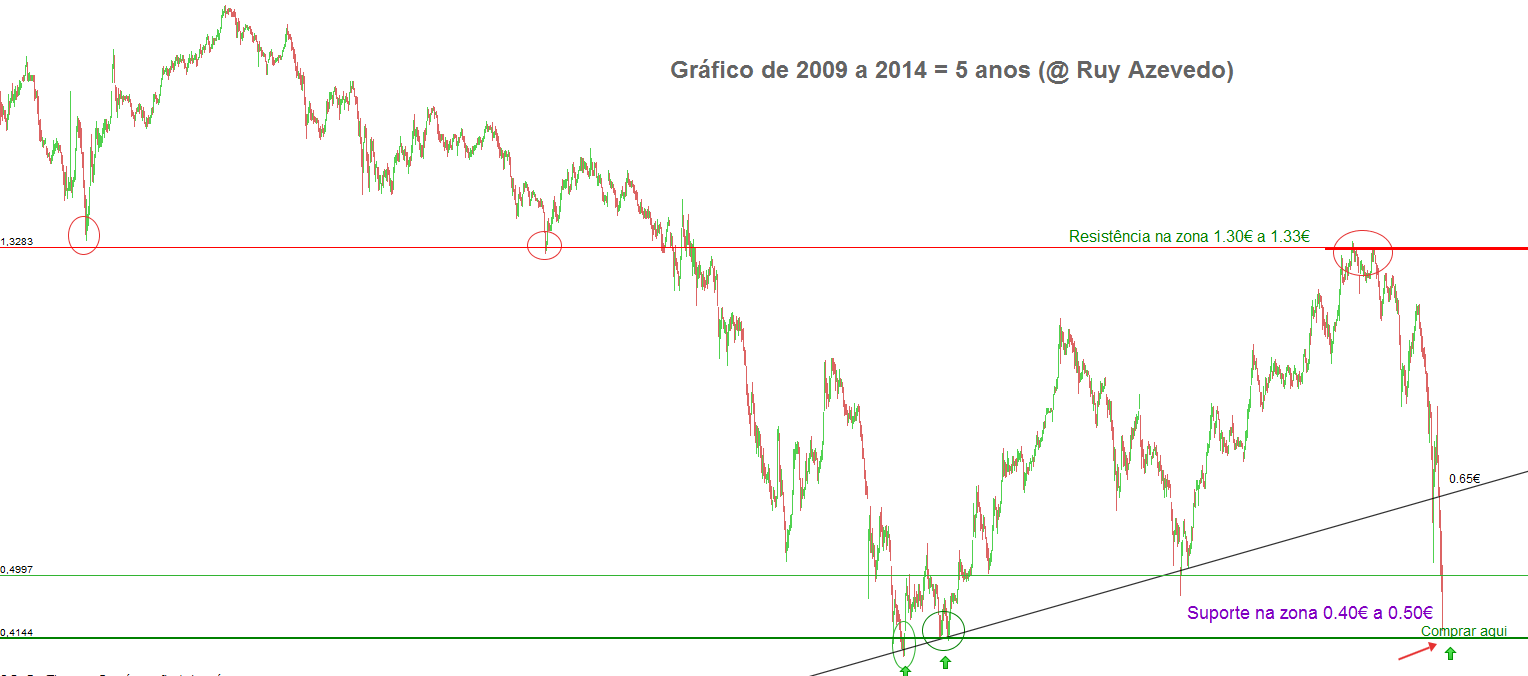 Espero que amanhã abra em GAP_Down ou caia 10% para atingir a base da zona de suporte (0.40€) e para eu entrar "LONGO".