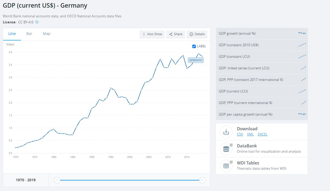 Realmente não faz sentido ver o PIB da Alemanha em USD, excepto se for para comparar com outros países e realmente nunca me tinha apercebido disso.