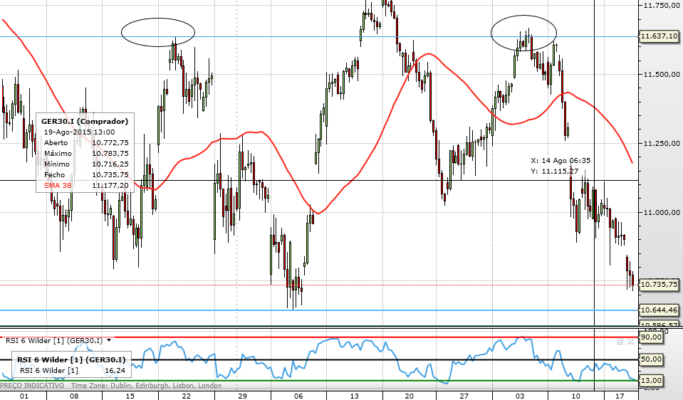 O DAX fechou o gap que tinha, aconselho os curtos a fecharem as suas posições, claro que ainda podemos cair mais, mas já estamos bem sobrevendidos, e o RSI entra numa boa zona.