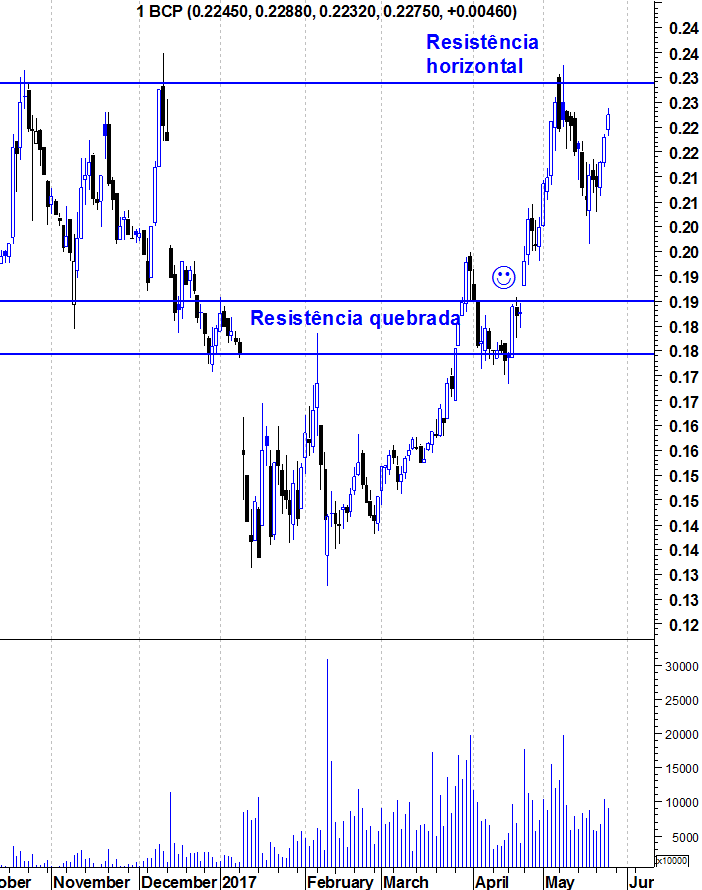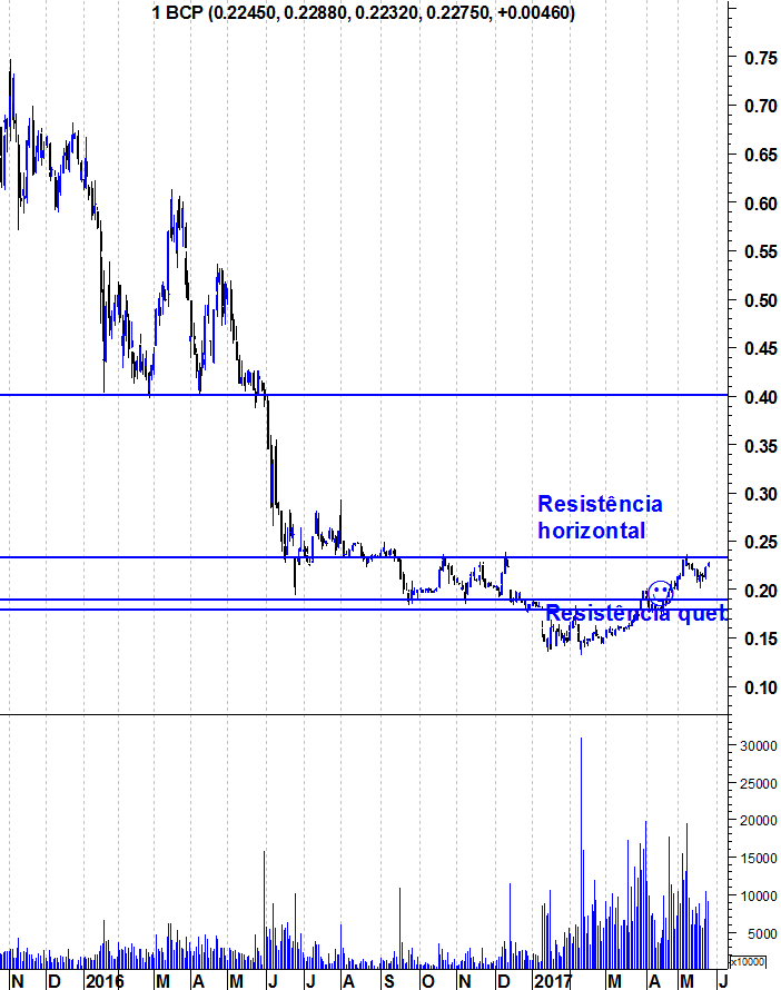 A evolução de hoje da cotação do BCP originou dois eventos técnicos muito relevantes.
