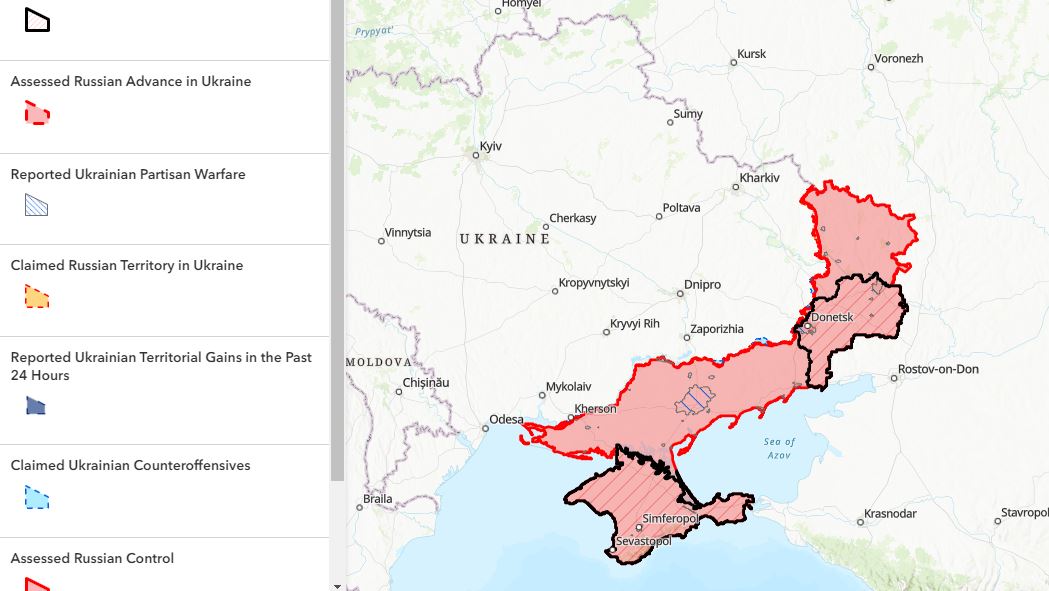 O que tenho colocado aqui, mostra a estabilização da linha da frente, com avanços residuais, em Kupiansk, Avdiivka (provavelmente a batalha mais mortal depois da 2ª grande guerra) e Kherson (margem esquerda do rio Dniepre).