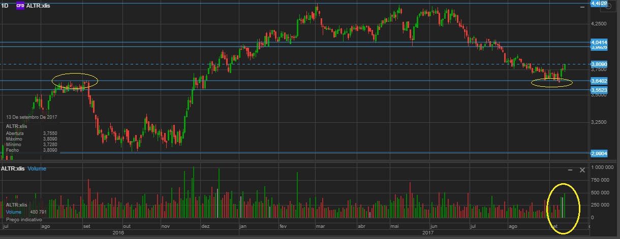 salvador_guru Escreveu:Após vários dias a cotar abaixo dos 3.70 e acima do suporte dos 3.60, hoje a dar sinais de inicio de inversão de tendência de cp.