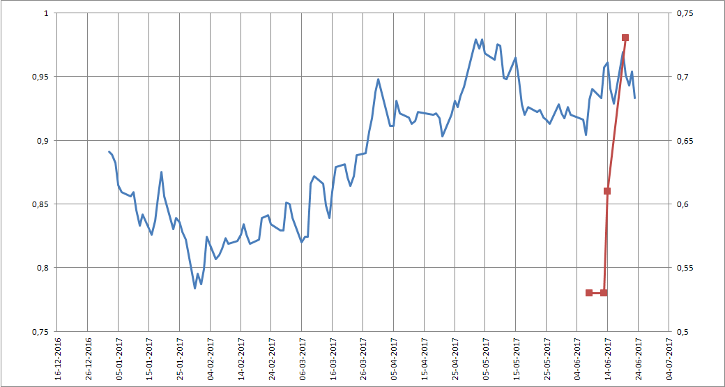 A fasquia dos 0.5 já foi ultrapassado em 8/6/2017 ali na zona dos 92, depois houve reforço. Ainda devem estar a perder.
