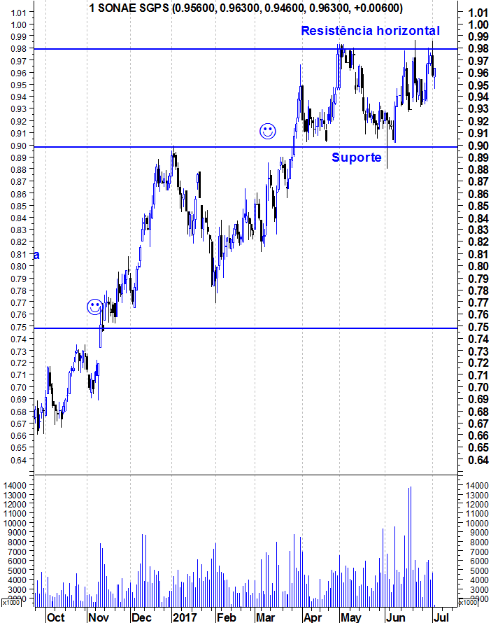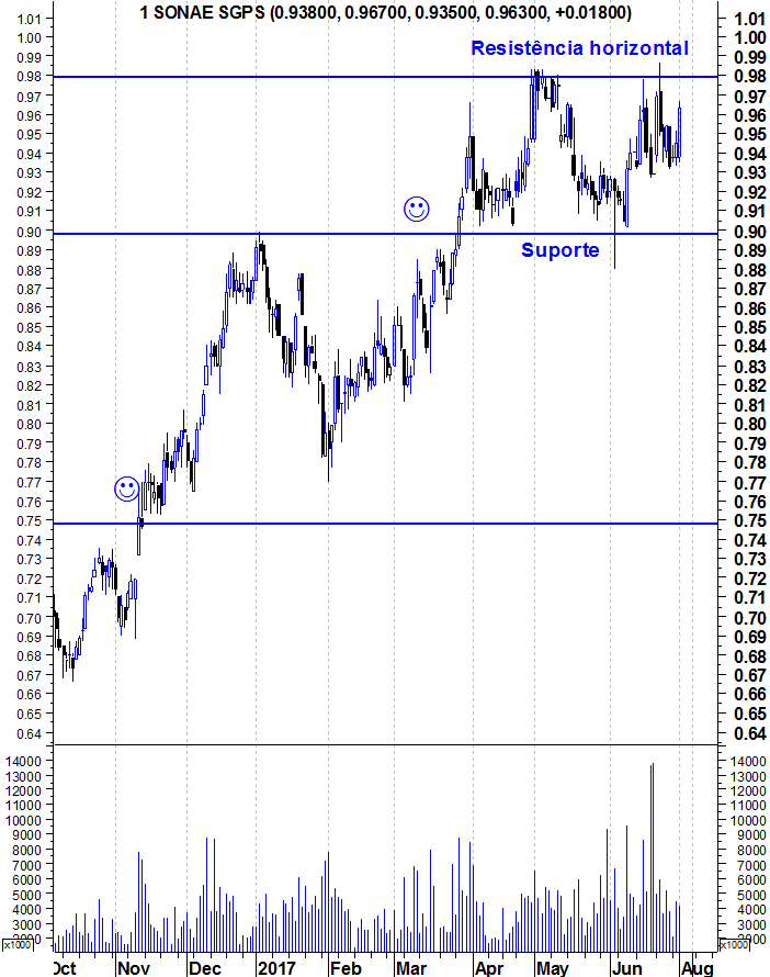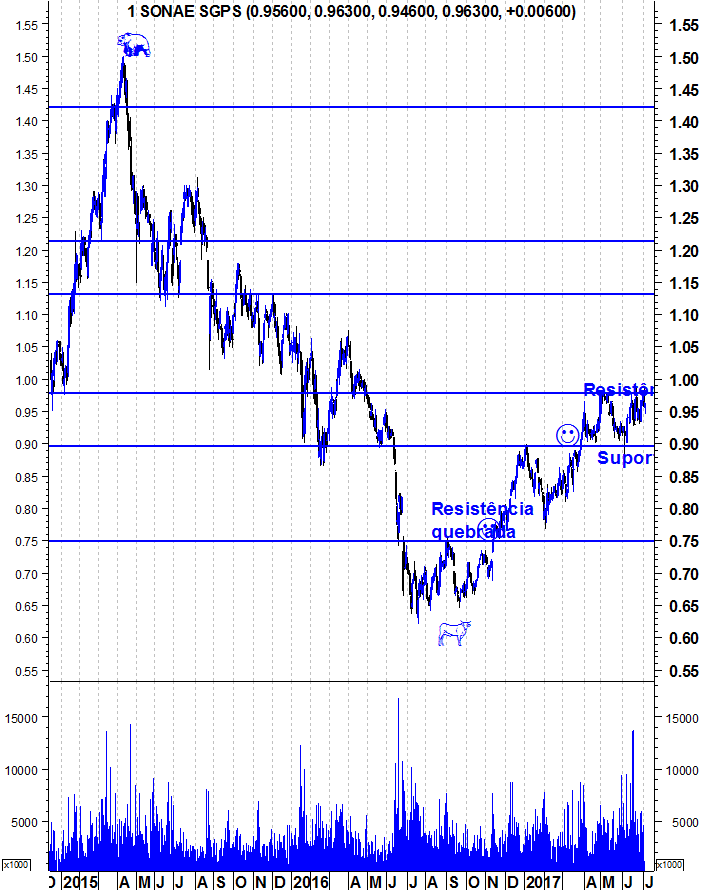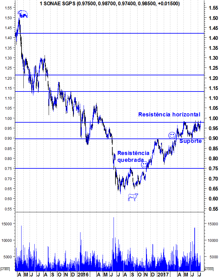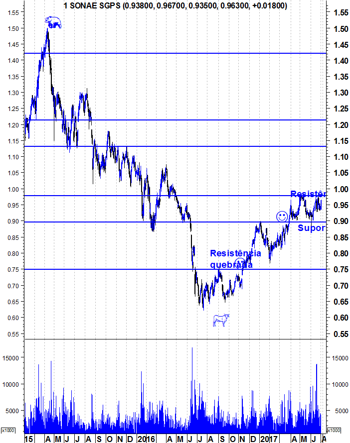 Coisas que gostaria de frisar: Não deve haver fixação no 1 euro. A resistência está um pouco abaixo, na zona dos 0,98 mas estamos a falar de zonas, por isso podemos referir 1 euro.