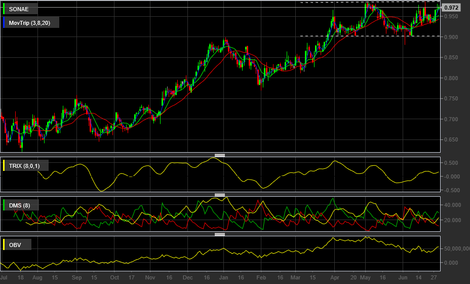 Se romper em fecho os 0.98cts só para lá em cima.