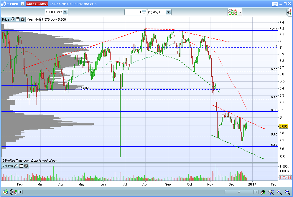 Tecnicamente, depois de ter quebrado a LT ascendente e o importante suporte entre os 6,35 e os 6,4 deixei de estar optimista na acção. Penso que os gráficos são claros.