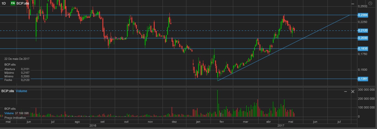 Em que valor se situa essa linha de tendência de longo prazo? Hoje já deu um bom sinal passando os 0,2151€ da linha de tendência de muito curto prazo.